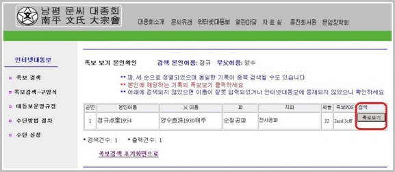 특히 인터넷대동보 검색방법은 자신의 이름과 아버님의 이름만 알면 초등학생이라도